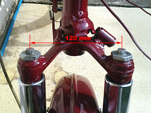 Schachteln bis ich diese an einen anderen Ort brachte. Im Frühjahr 2012 wurden die Teile ausgepackt, gereinigt, der Tank innen entfettet, entrostet und versiegelt. Bei einem Teilemarkt bekam ich dann einen passenden Scheinwerferträger. (für Gabelbreite 120mm - Siehe Bild li.unten) Im September 2012 brachte ich die Teile zu einem Lackierer und über die Wintermonate wurde dann langsam zusammengebaut. |